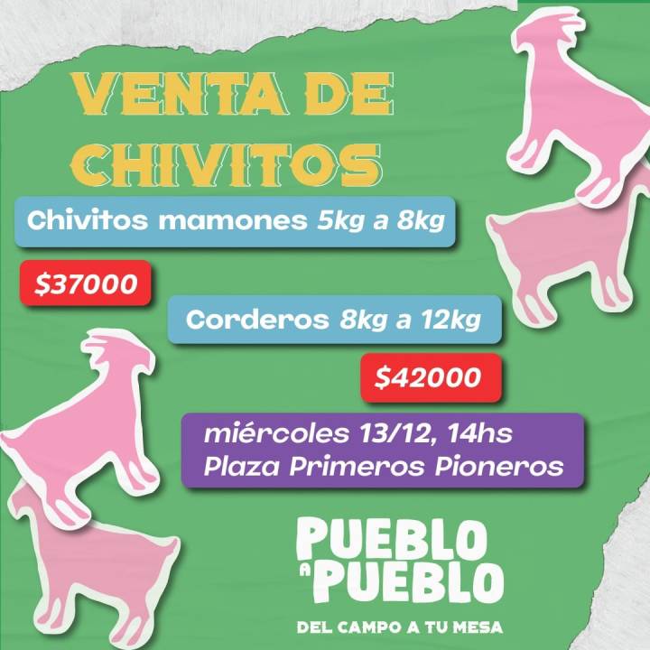 Los interesados podrán abonar con efectivo y débito. El valor es de 37 mil pesos, en chivitos que promedian los 7 kilos. El precio es un poco más económico en comparación a lo que se observa en algunos comercios.