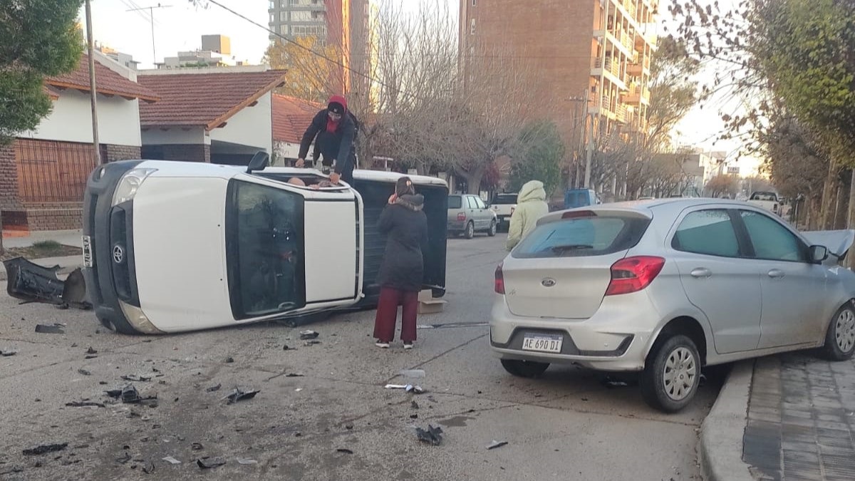 Dos conductores protagonizaron un fuerte choque y vuelco en el centro de Roca: qué pasó