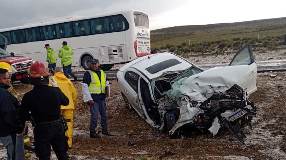 El choque frontal entre un colectivo y un auto a 4 kilómetros de Zapala dejó a dos personas con heridas de consideración. El auto perdió el control durante una fuerte tormenta de granizos sobre la ruta 40.
