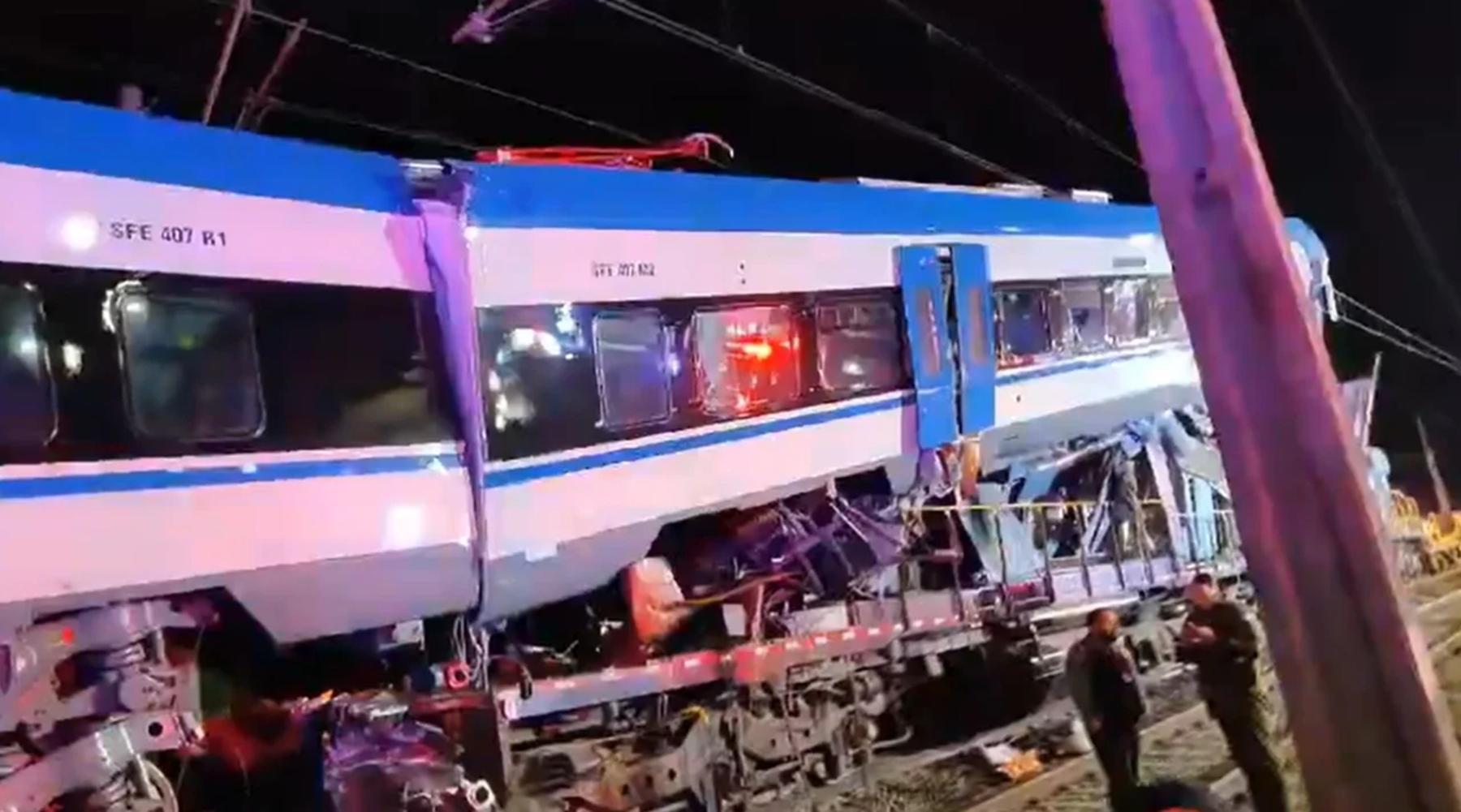 La velocidad del tren se está investigando mediante la triangulación de los celulares de las personas a bordo. “Creen que puede desarrollar una velocidad de 65 kilómetros por hora, pero venía alrededor de 58 kilómetros por hora“, agregó Aravena.