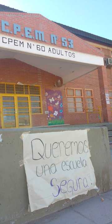 A través de sus redes sociales la comunidad educativa del CPEM 53 informó que, luego de realizar el abrazo simbólico ayer donde se buscaba visibilizar la situación, continuaban sin respuestas al reclamo principal que es la incorporación de un guardia de seguridad más y un rondín policial que esté presente en el ingreso y egreso de cada turno.
