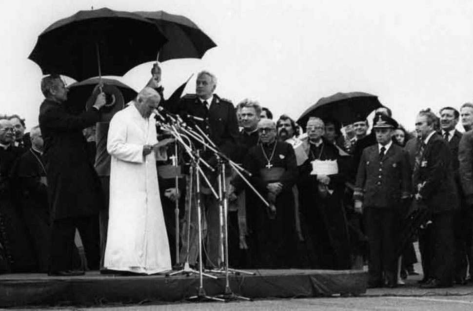 En medio de la guerra de las Islas Malvinas, el papa Juan Pablo II oficia una multitudinaria misa en el santuario de la Virgen de Luján. «Que por tu intercesión, oh Reina de la Paz, se encuentren las vías para la solución del actual conflicto, en la paz, en la justicia y en el respeto de la dignidad propia de cada nación”, pidió el pontífice.