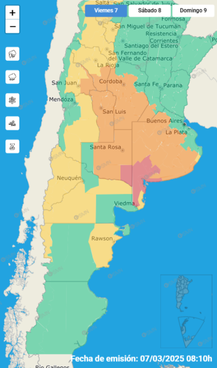 Este viernes 7 de marzo se extendió el alerta por tormentas en el país. El Servicio Meteorológico Nacional (SMN) comunicó que es de nivel rojo en la zona de Bahía Blanca, que ya sufre las consecuencias de un temporal de tormentas, con evacuados y clases suspendidas. La advertencia también alcanza la costa de Carmen de Patagones, que limita con Viedma. Desde la AIC indicaron que se esperan hoy tormentas en la capital de Río Negro.