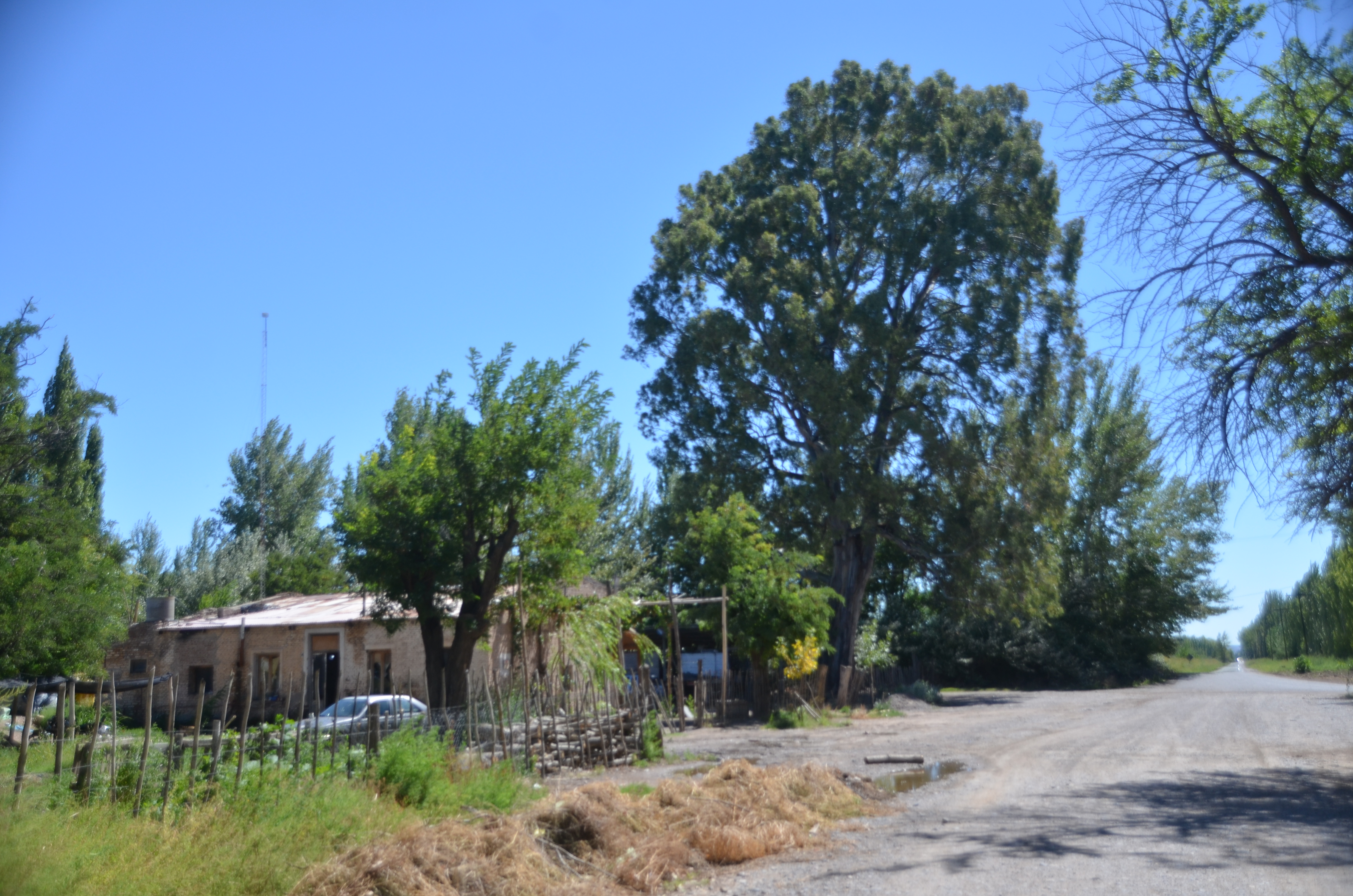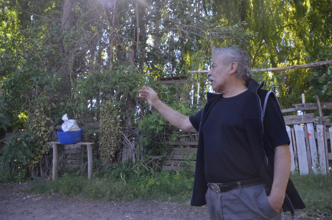Y agregó, “Yo estoy acá desde el año 1951, cuando éramos apenas 2 o 3 casitas (estaban los Goroso, Nahuelcura y nada más). El barrio fue creciendo, los últimos son dos vecinos que llegaron el año pasado y vinieron a trabajar en la fruta. Cuatro Galpones es todo esta zona (señala hacia el norte y sur); yo estudiaba en la vieja escuela, la que está al lado del eucaliptus ese que para mi tiene unos 100 años (exclamación)”.