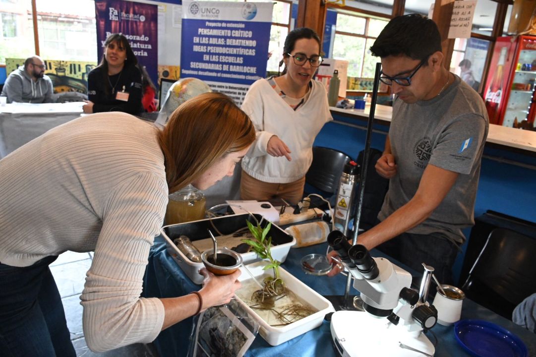 A pocos metros de ese stand, otros investigadores mostraban «material de parasitología». La gente podía observar, a través de microscopios, chinches y piojos. «Las truchas, a veces, pueden tener larvas que pueden generar inconvenientes en el intestino de las personas. ¿Cómo evitamos esto? Cocinándolas bien«, advertía una especialista a un grupo de chicos.