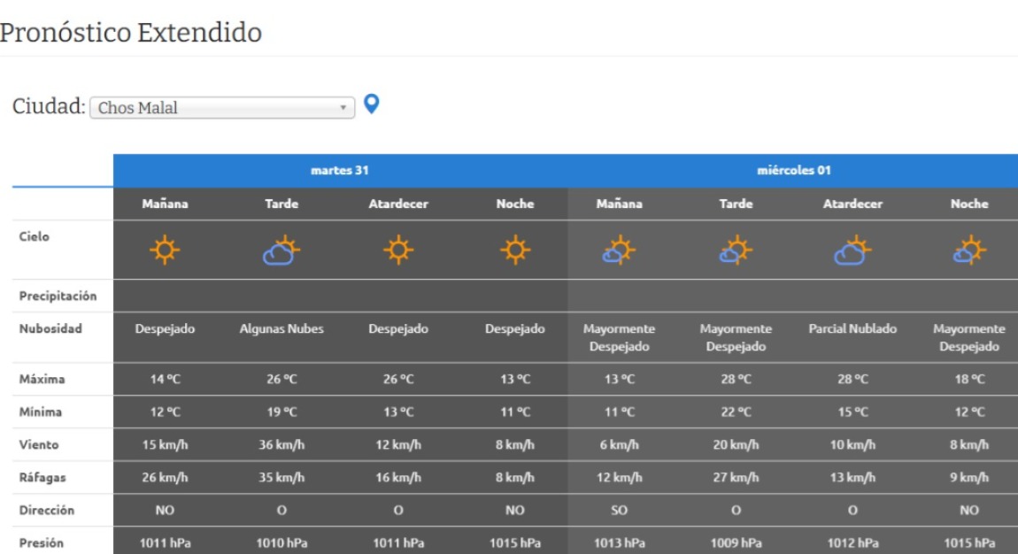 En la zona de Chos Malal y localidades aledañas, la AIC anuncia un martes fresco con máximas de 26°C, sin viento y un cielo despejado. El miércoles será un poco más caluroso con máximas de 28°C.