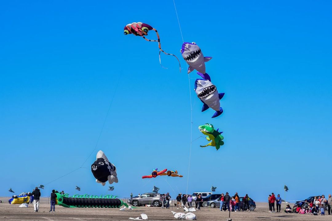 Con sus dos primeras jornadas soleadas, el balneario El Cóndor cumplió con su parte inicial del programa de playa del Festival de Viento, que congrega a aficionados de carrovelismo, kitesurf, parapente, kitebuggy y, también, de grupos de barriletes gigantes.