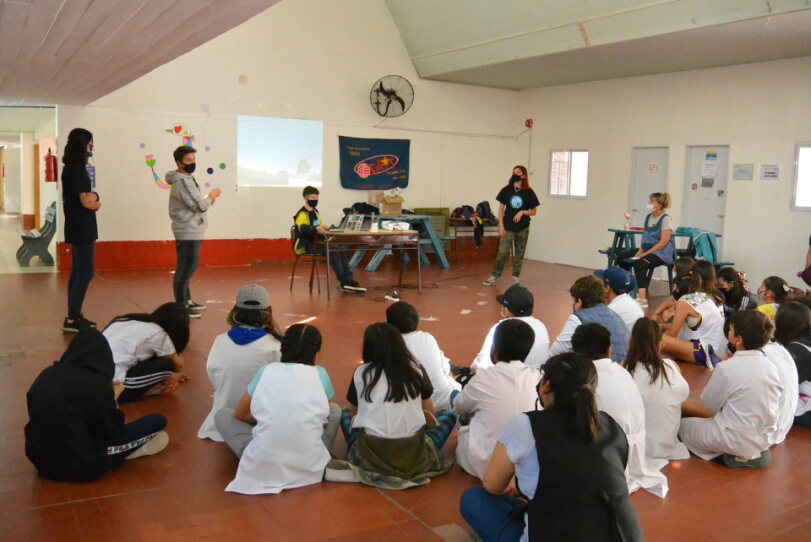Los estudiantes asumen el rol de líderes o educadores de contenidos científicos y de astronomía, junto a los docentes. «Sería mucho más fácil que nosotros demos el taller, pero la idea es que los chicos desarrollen sus capacidades en torno a las explicaciones y la coordinación«, aclaró Galperín y continuó: «¿Por qué pensamos en los adolescentes? Porque siempre se los piensa en un espacio de debilidad y prima la idea de que los jóvenes no se interesan por nada. Acá tenemos un grupo que se compromete, arma talleres, se interesa por la astronomía».