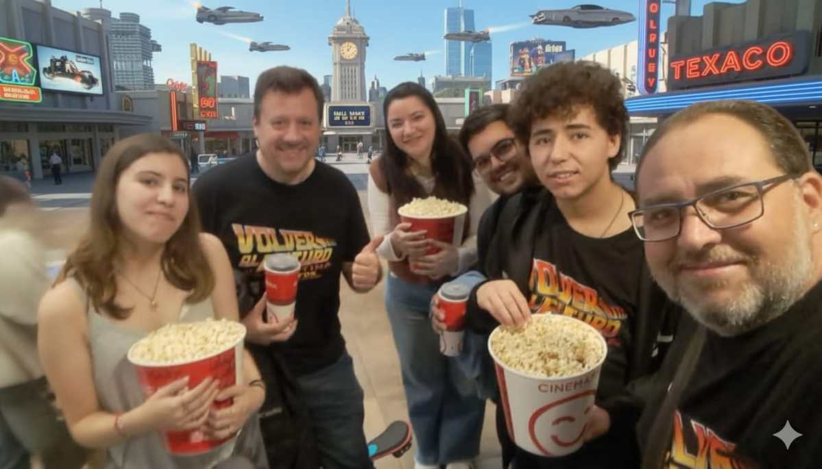 Fue con amigos del grupo Team Fox. “Todos con nuestra remera de Volver al futuro”. Y, por supuesto, dijo el diálogo a la perfección. Para él, la película es más que nostalgia: «Es apasionante. Es transgeneracional. No pierde vigencia. Es maravillosa”, resume.