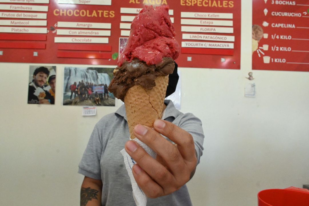 «Todo el tiempo estoy probando cosas nuevas. El sabor que más nos representa se llama ‘estepa’ y consiste en crema de arándano, con salsa de guindas y trozos de frutilla. No sabía qué nombre darle y un cliente me sugirió ‘estepa’ por la fiesta característica de Dina Huapi», dijo. Así también surgieron los gustos «Cerro Leones» y «Dina Huapi». Ricardo lo logró: su heladería tiene una fuerte identificación con la localidad.