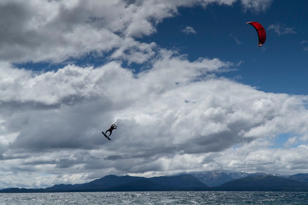 Nicolás Zarnowski se calza su traje de neoprene, toma su vela y su tabla y avanza convencido hacia el lago Nahuel Huapi. Por momentos, las ráfagas de viento lo obligan a trotar. Ingresa al lago sin dudarlo y el espectáculo comienza. Navega y recorre de una punta a la otra hasta que, de repente, despega del agua y se eleva por encima de los 10 metros. El salto se destaca entre otras tantas velas de colores y sorprende a los espectadores que observan a los amantes del kitesurf desde sus automóviles a la altura del Ñireco.