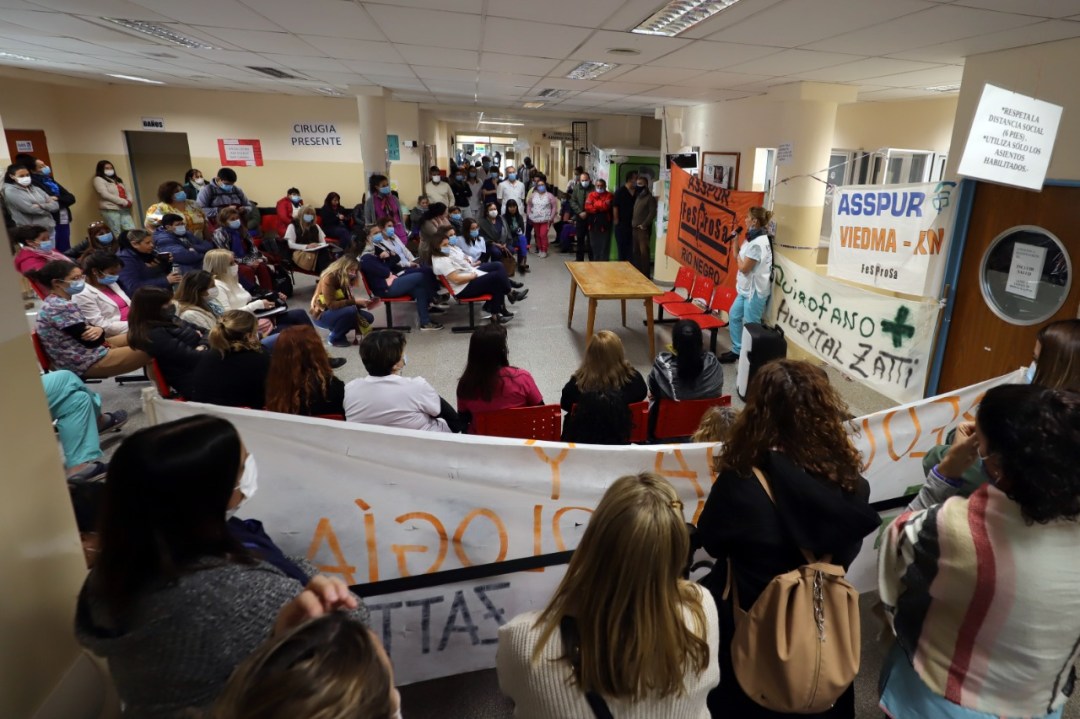 Durante este jueves Asspur realizó una nueva asamblea en el hall del hospital. Foto: Marcelo Ochoa.