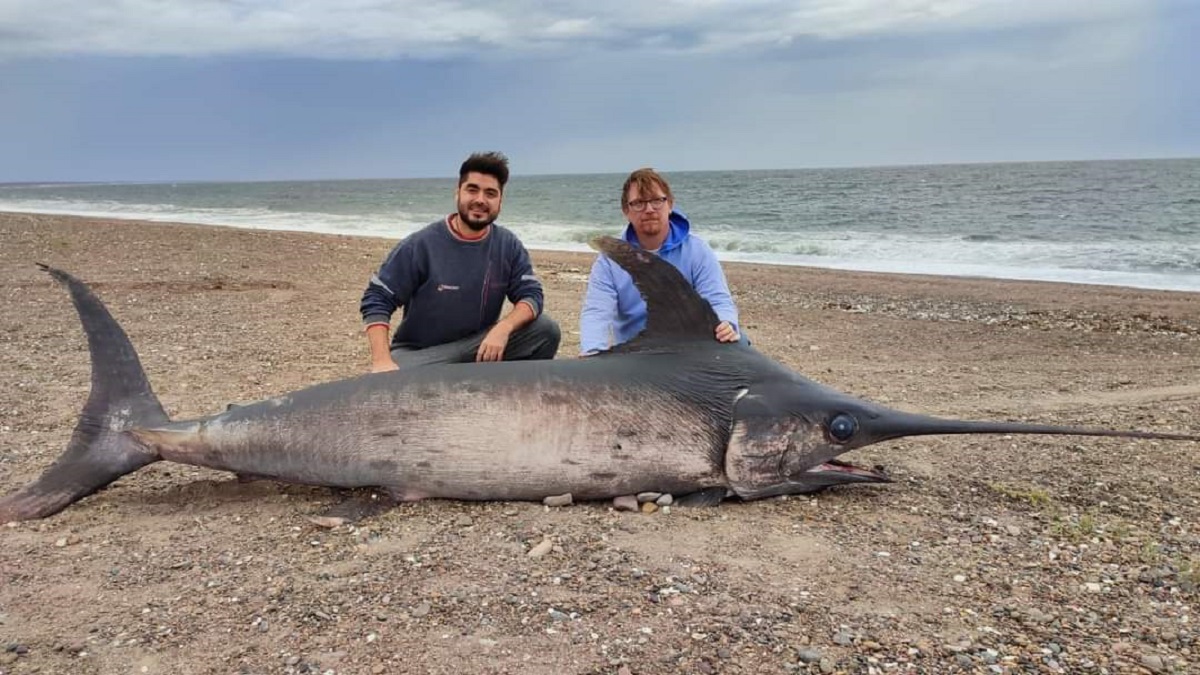 El impactante hallazgo de un pez espada en las costas de Puerto Lobos en el Golfo San Matías