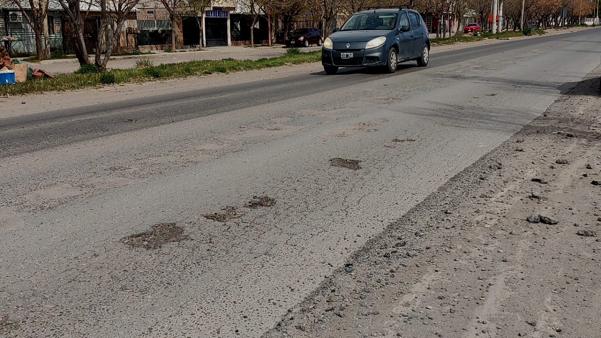 El deterioro de las carreteras provocado por el tránsito pesado con destino a la Cuenca Neuquina no sólo perjudica la Ruta 151, sino que también impacta negativamente en la zona urbana. La avenida Illia es un claro ejemplo.