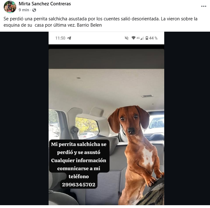 La situación se repite todos los años, al día siguiente de nochebuena se multiplican estos llamados en redes sociales con fotos de perros que huyeron de sus casas por el estruendo de la pirotecnia y la celebración queda opacada para muchas familias que pasan horas buscándolos.