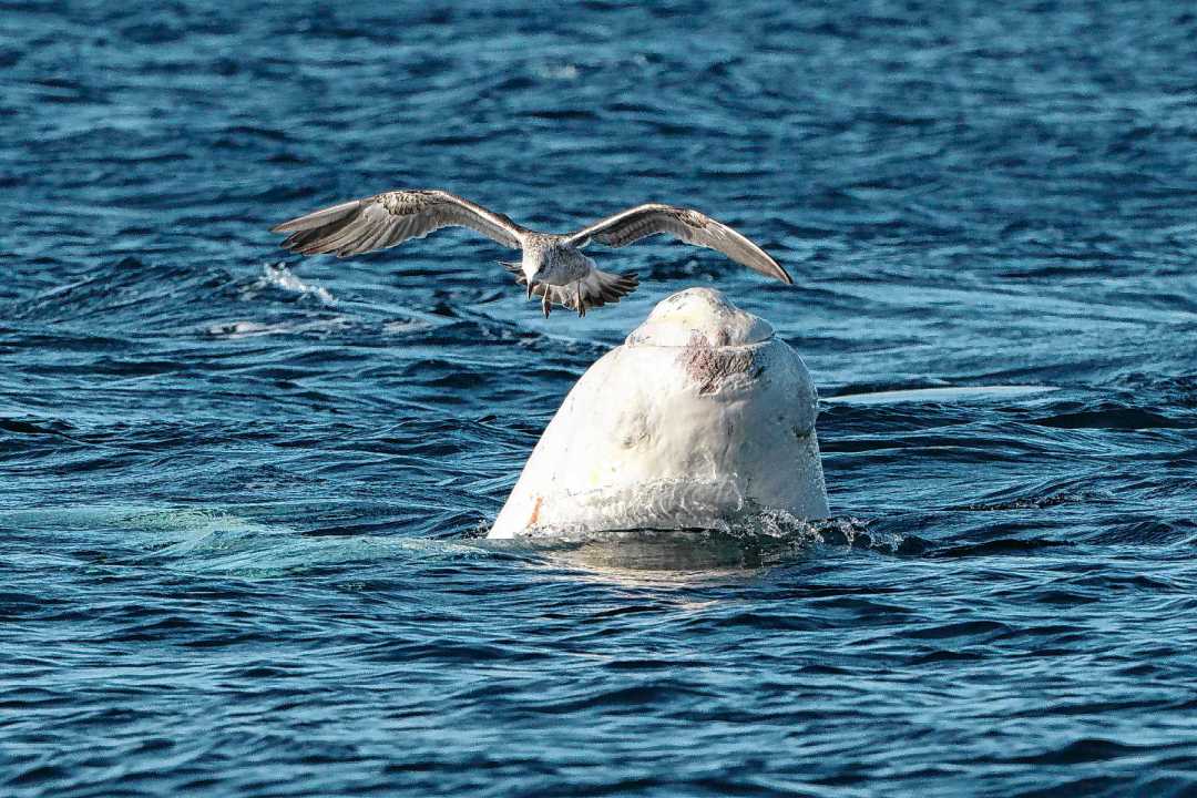 El maravilloso momento frente a una ballena blanca: sorpresa, saltos y juegos