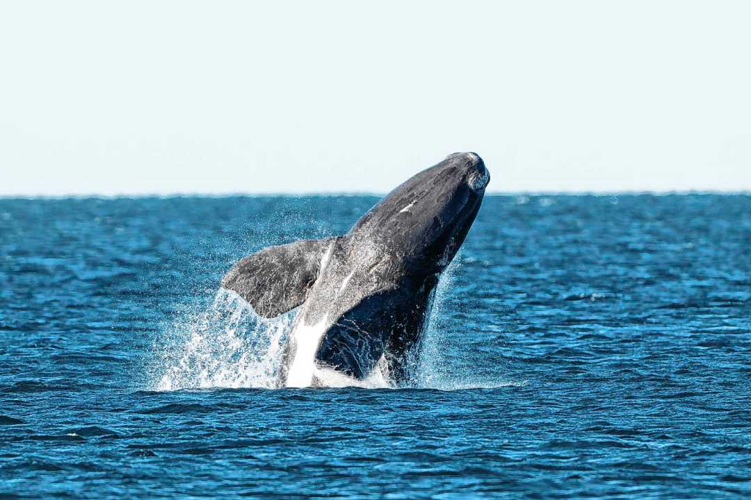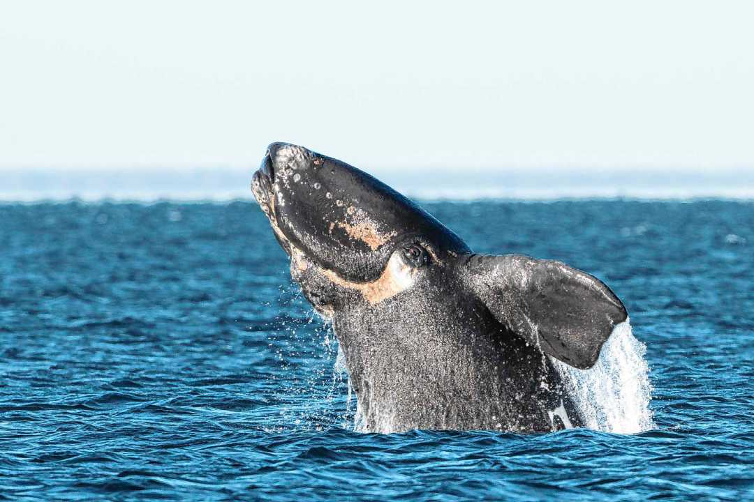 Un juvenil de ballena franca austral sorprendió a los visitantes en las costas de Puerto Madryn. Un fenómeno genético que suma magia a la temporada.