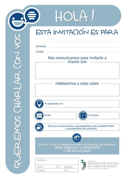 Lo novedoso es que unos 150 niños y niñas rionegrinos ayudaron a rediseñar el tradicional modelo que tenía como destinatario al adulto responsable. Fueron ellos los protagonistas para construir cómo debía ser ese documento legal de “notificación”.
