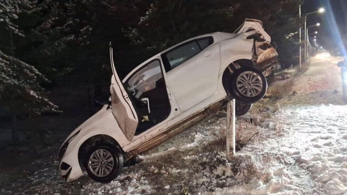 El peligro de la velocidad en la nieve: un auto terminó destrozado contra un poste en Bariloche
