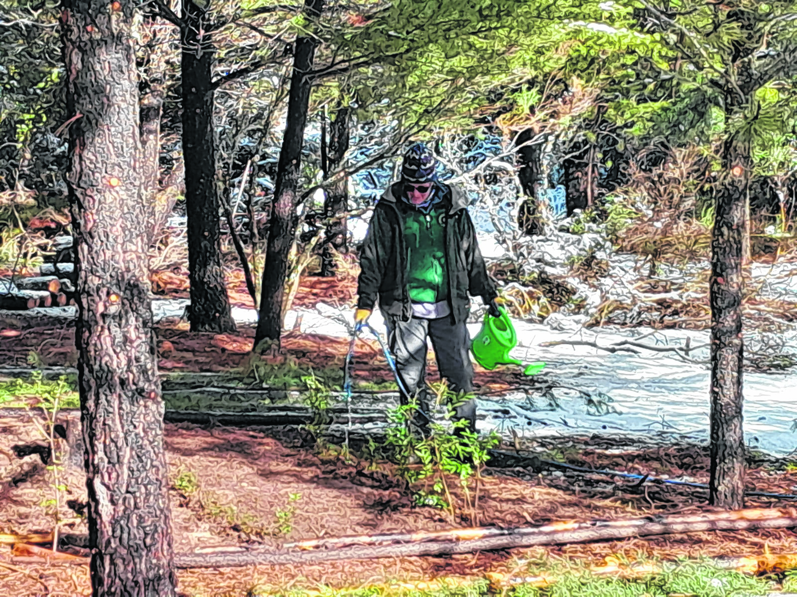 Alrededor del invernadero, se inició un trabajo de recuperación de un pinar. “Había una invasión de pino y retama y empezamos un fuerte trabajo de control. Estamos tratando de sacar los pequeños pinos invasores para poder caminar por ese sector y recuperar ese lugar para las plantas nativas como lauras o radales”, dijo.