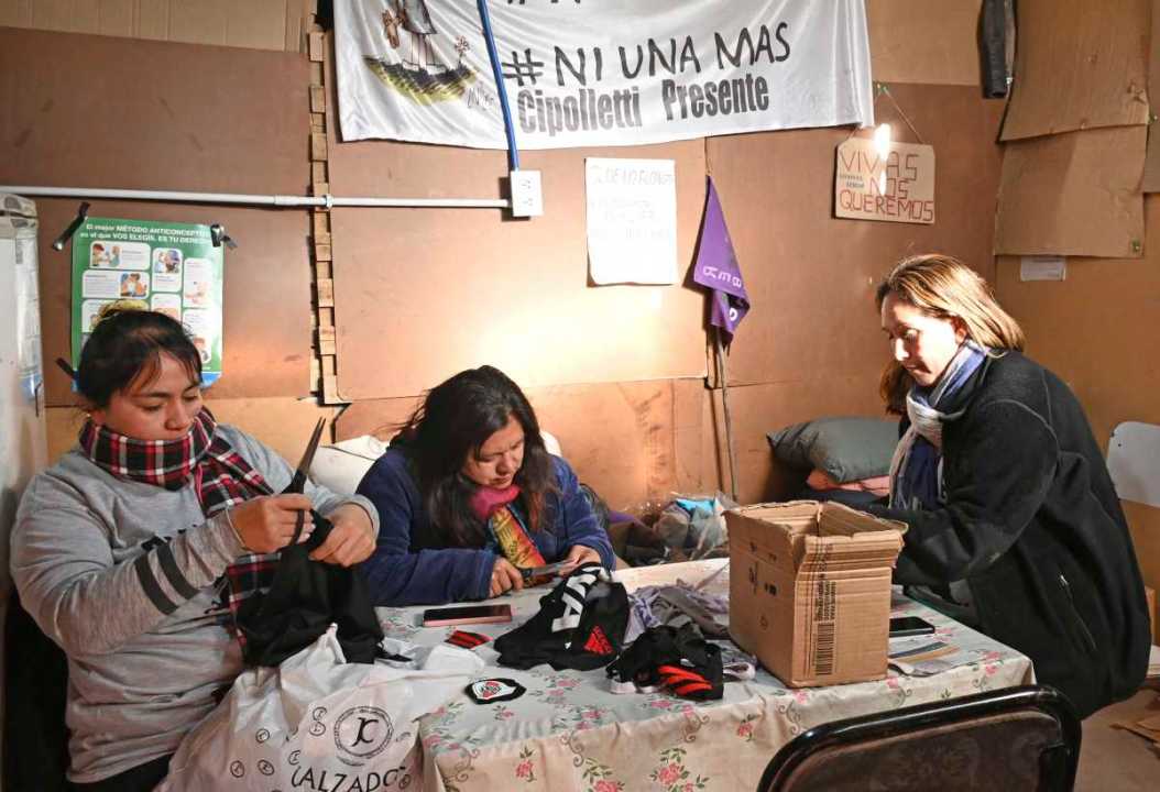 Entre ruidos de tijeras, pedazos de tela y mates, un grupo de mujeres corta retazos de tela para rellenar almohadones, acolchados, frazadas y algunos otros inventos. Según relató Sonia es un proceso organizado que ayuda a que las tareas sean equitativas y livianas.