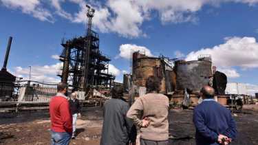 Además del penetrante olor a hidrocarburo, se ven los restos de hierros retorcidos y las estructuras desarmadas que permiten graficar la alta temperatura y la fuerza de la explosión. Sin embargo, hacia el otro extremo del predio, donde se encuentra la planta de despacho y un gran galpón no hay daños visibles por lo que el fuego no se expandió hacia ese sector.