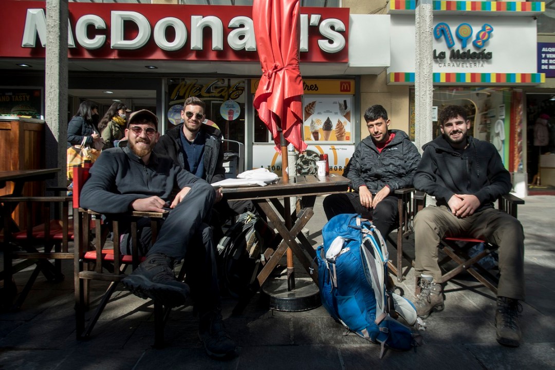 Tom y Aviv, dos turistas de Israel, llegaron a Bariloche el último miércoles desde El Calafate. Durante su viaje por Argentina, se encontraron casualmente con dos compatriotas que ya conocían, Nir y Jonatan, que, al igual que ellos, se lanzaron en busca de nuevos horizontes al término del servicio militar.