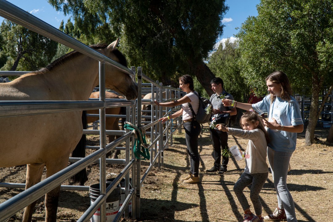 Los caballos zainos, alazanes o tordillos despertaron la curiosidad de chicos y grandes. (foto Marcelo Martínez)
