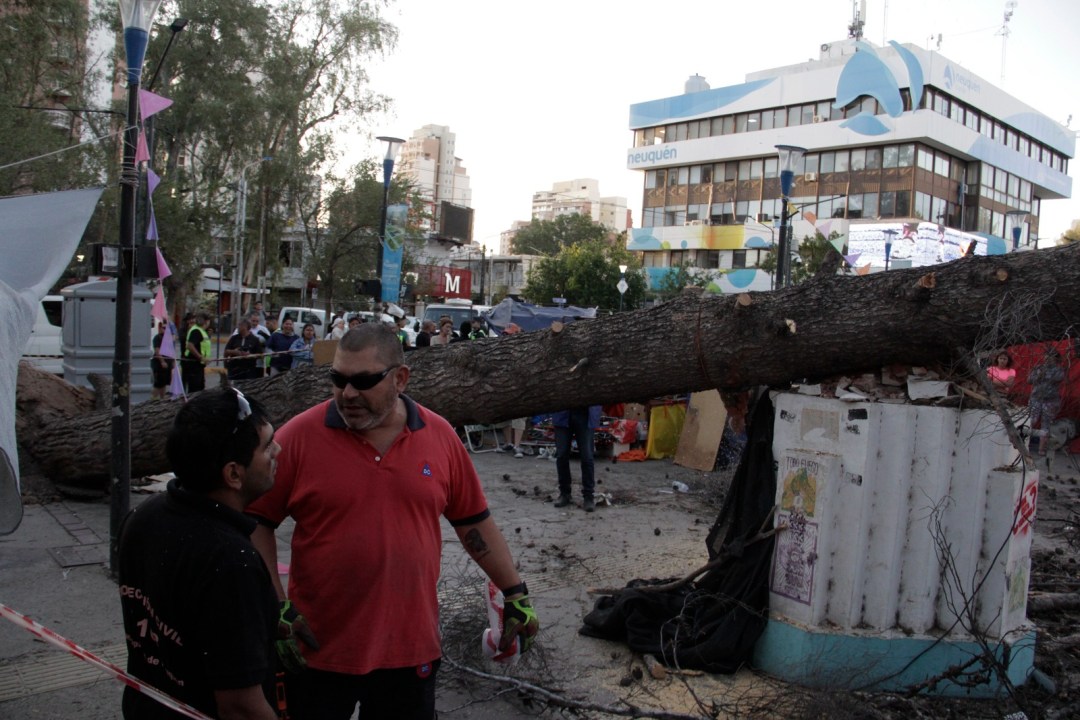 Se cayó un pino arriba de los artesanos en Neuquén: hubo calles cortadas
