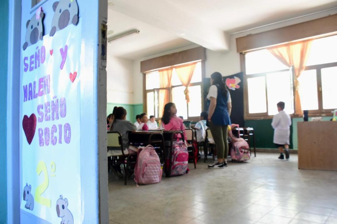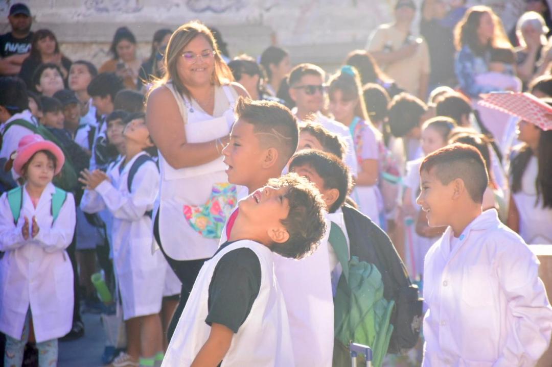 La marea de guardapolvos blancos y planchados se hizo notar más a las 8 cuando todos comenzaron a reunirse en el playón de su colegio para recibir la bienvenida de quienes los van a acompañar durante este año en su educación.
