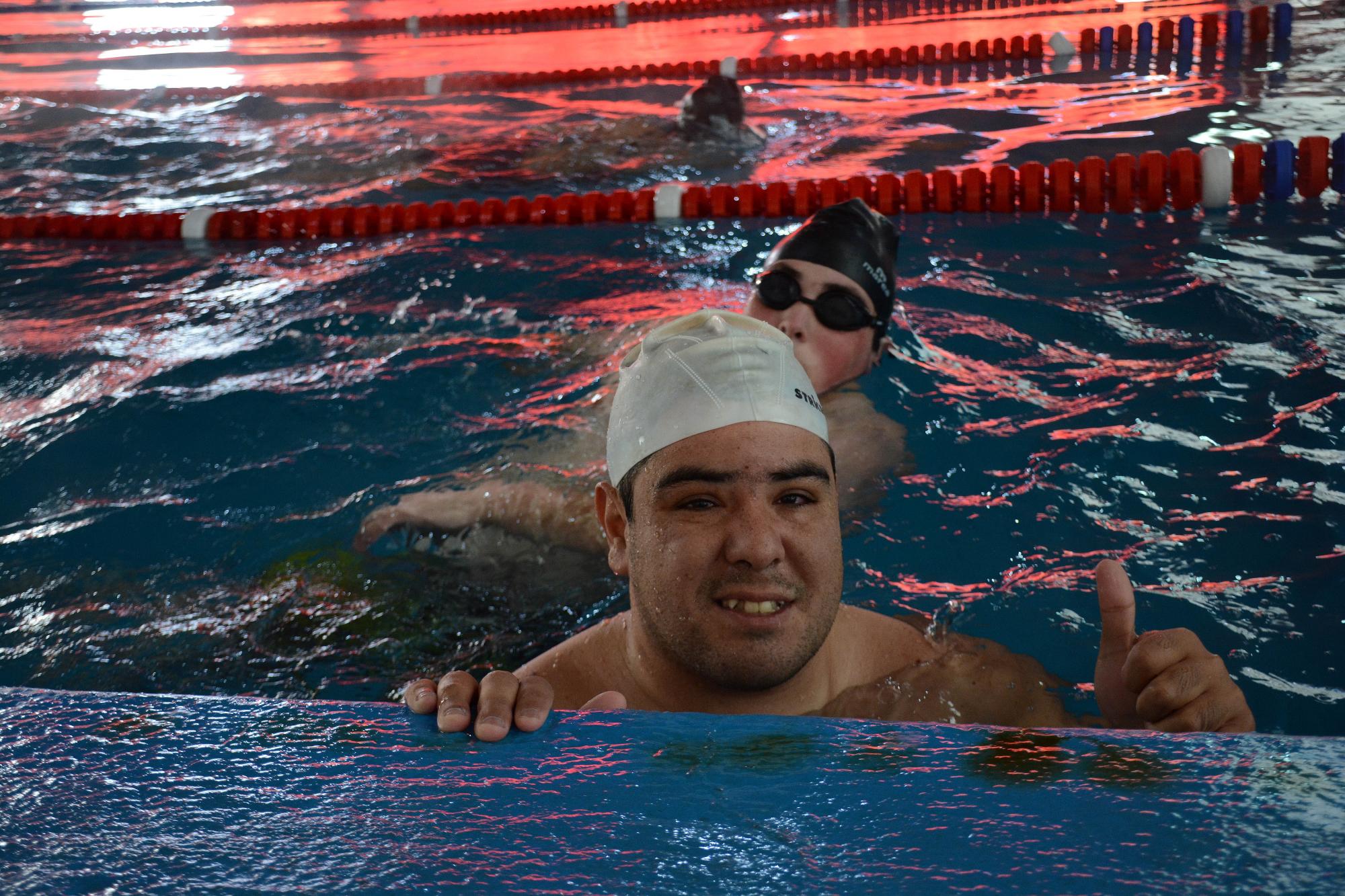 A los cuatro años, el profesor Claudio Barra, que está a cargo del área de inclusión del Municipio, lo invitó a entrenar. Luego a participar de competencias en la región, ahora lo hace en triatlones y en aguas abiertas.