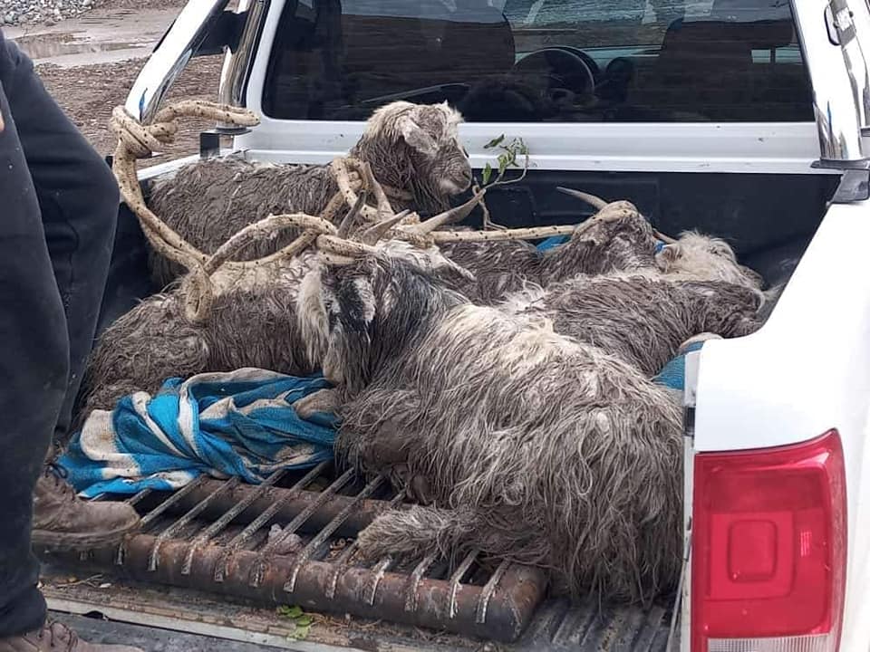 Así, gracias al trabajo en conjunto, las chivas fueron rescatadas y puestas a resguardo en la caja de una camioneta.