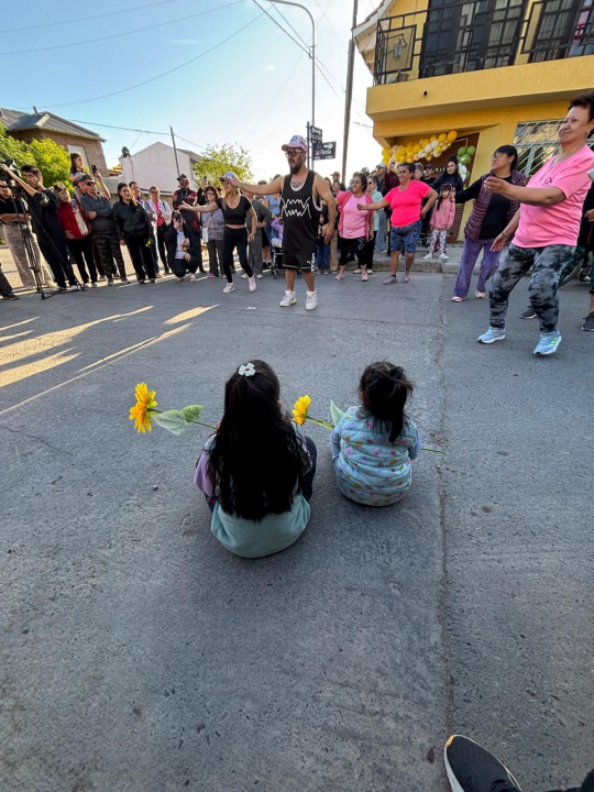 Luego, familiares, amigos y toda la comunidad del barrio la recibieron en la intersección de las calles República de Italia y La Florida con una bienvenida especial con flores amarillas para «darle la bienvenida a nuestra guerrera».