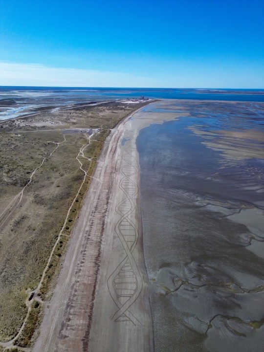 El ADN gigante fue realizado como parte del cronograma del 1° Festival de Arte con Arena en Río Negro, que se llevó adelante del 28 de febrero al 4 de marzo.