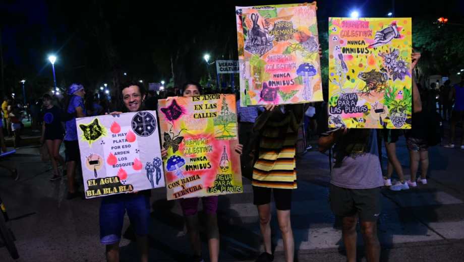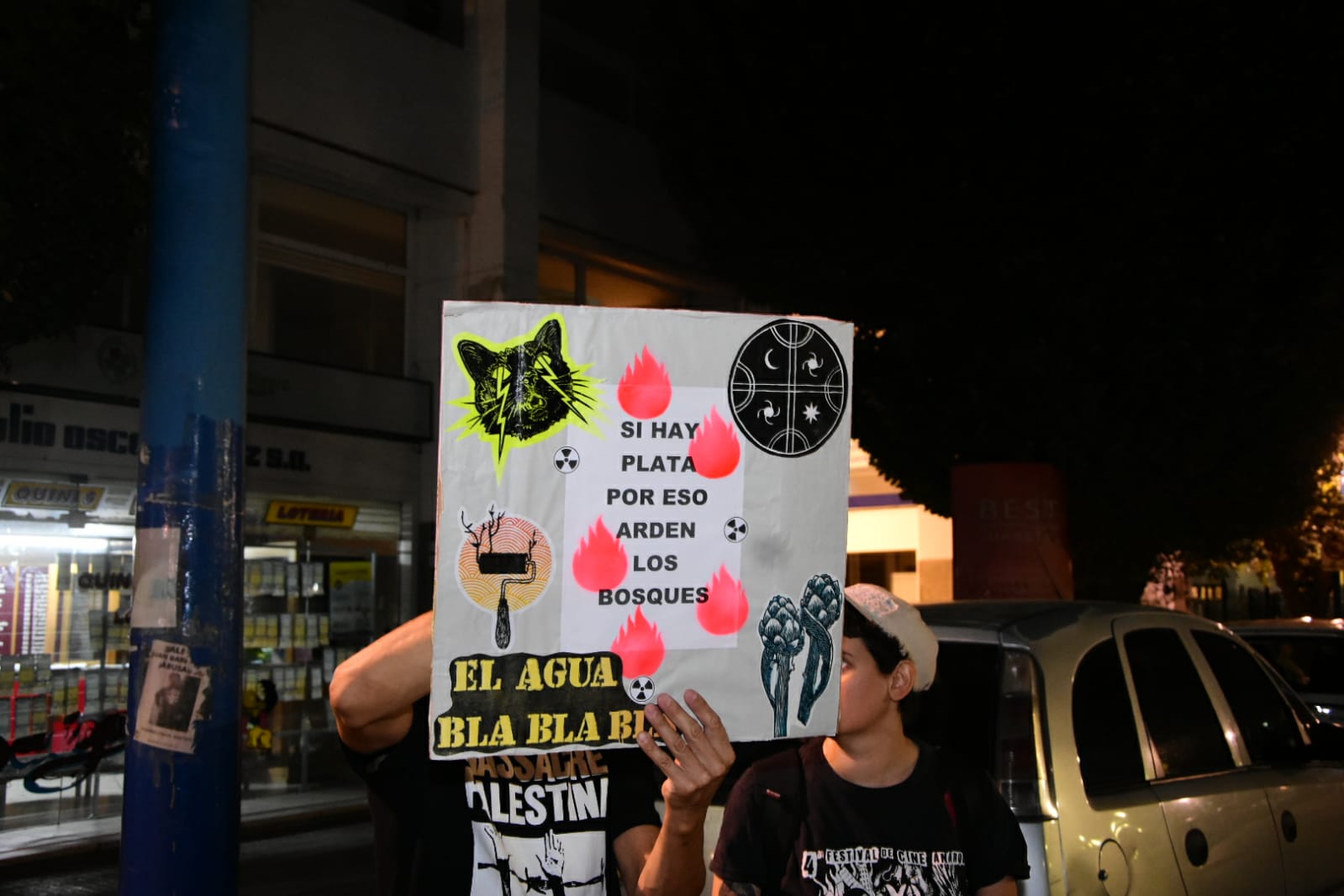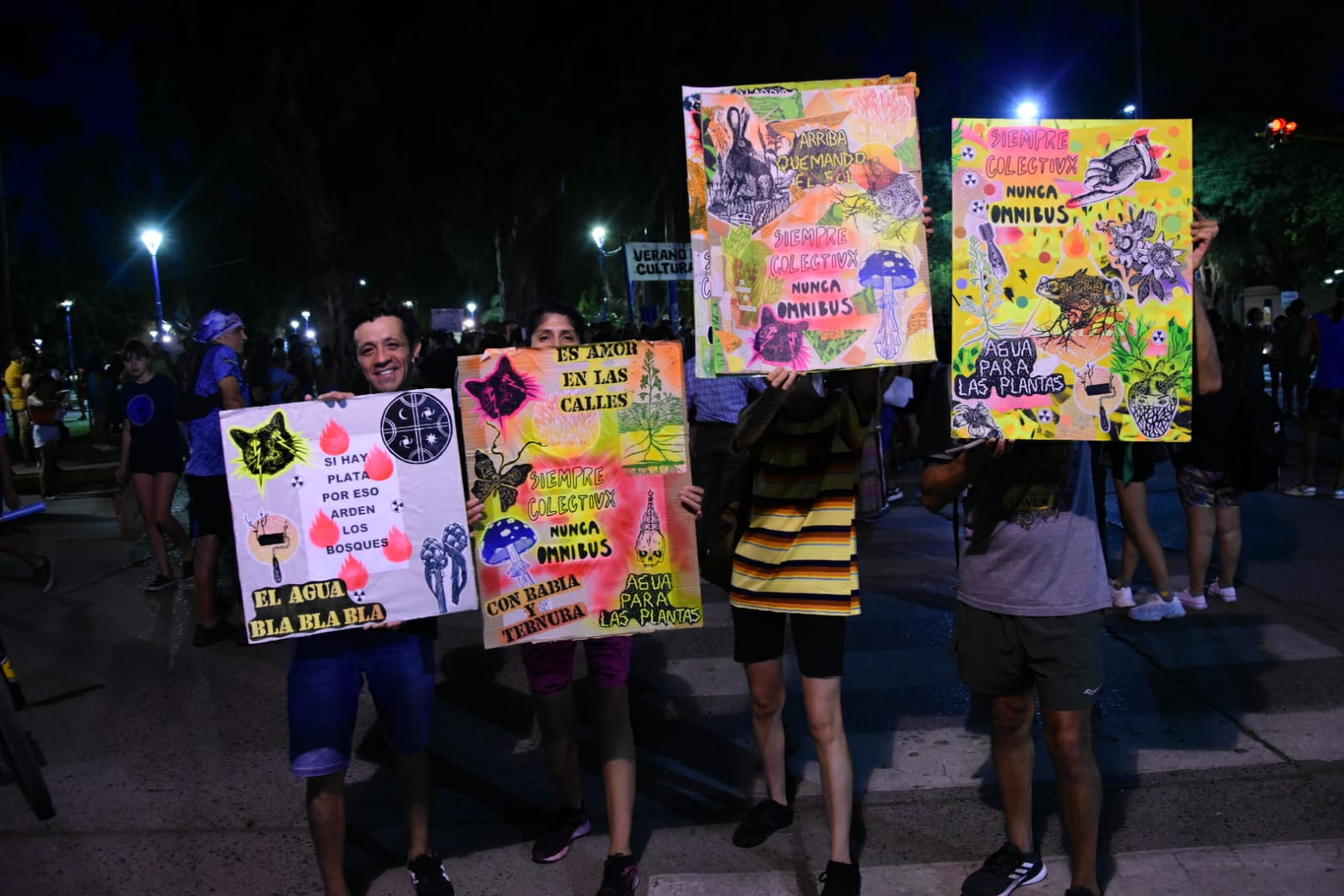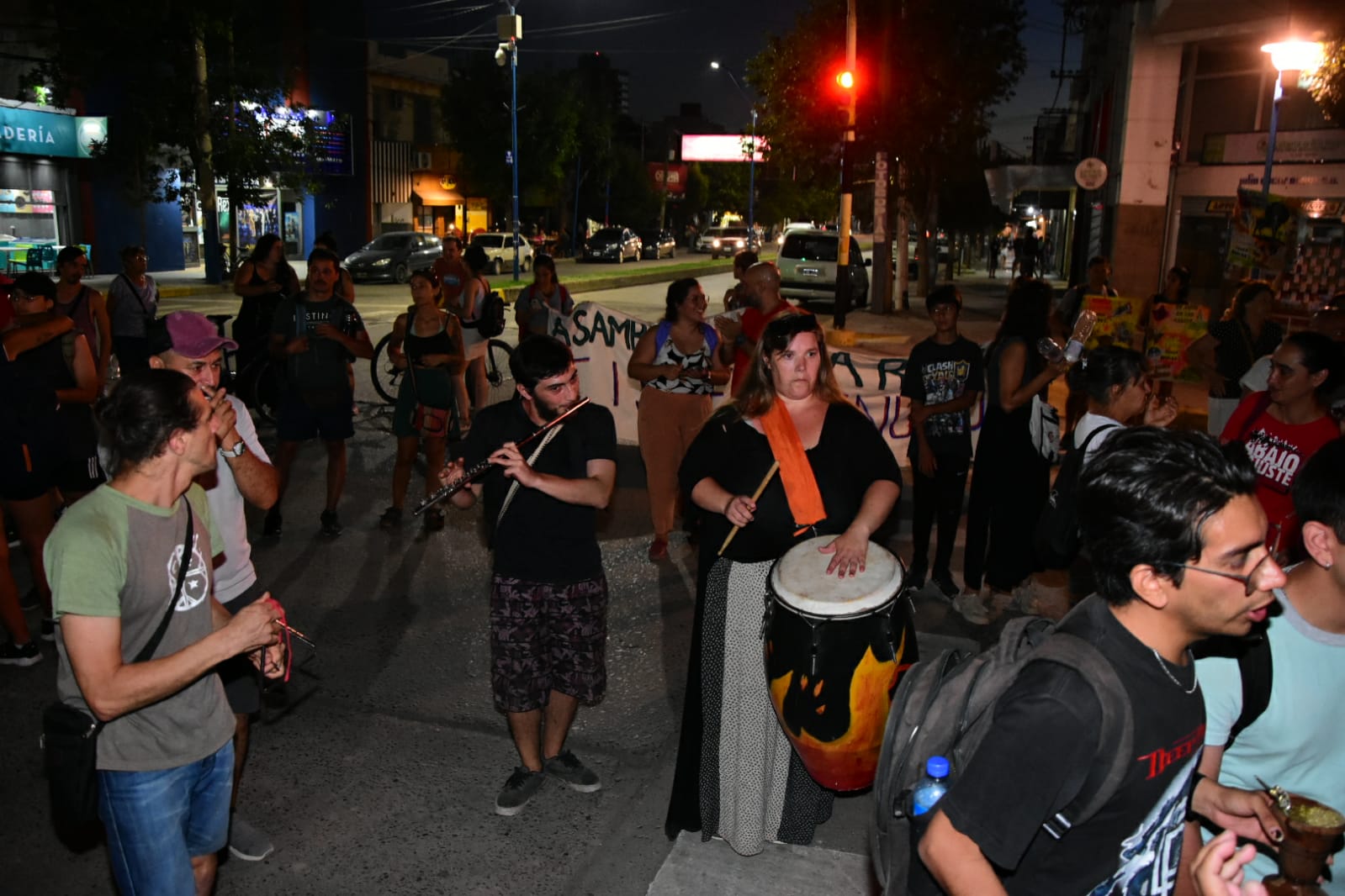 El ruido de los cacerolazos hizo eco en la ciudad. Músicos con diferentes instrumentos acompañaron las palmas de la gente, quienes tenían diversos carteles: «Sí hay plata, por eso queman bosques», «Comerciantes autoconvocados hacemos paro», «Falcultades Delegadas».