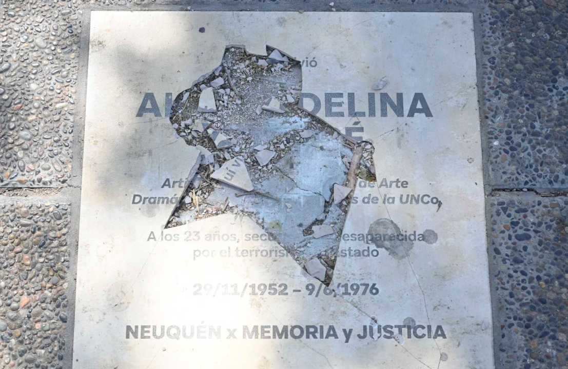 Este hecho se suma a lo denunciado por la agrupación H.I.J.E.S (Hijos, hijas e hijes por la Identidad y la Justicia contra el Olvido y el Silencio) Alto Valle la semana pasada: la vandalización de las baldosas colocadas en el Parque Central Este de Neuquén, sobre calle Independencia entre Córdoba y Mendoza.