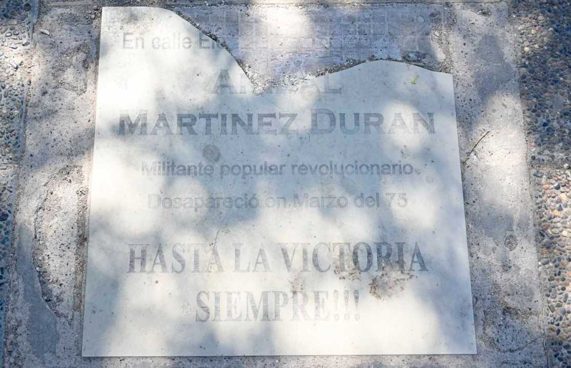 Las tres baldosas están en memoria de Alicia Pifarré, Aníbal Martínez y Oscar Cabezón Andrada, detenidos desparecidos durante la última dictada militar.