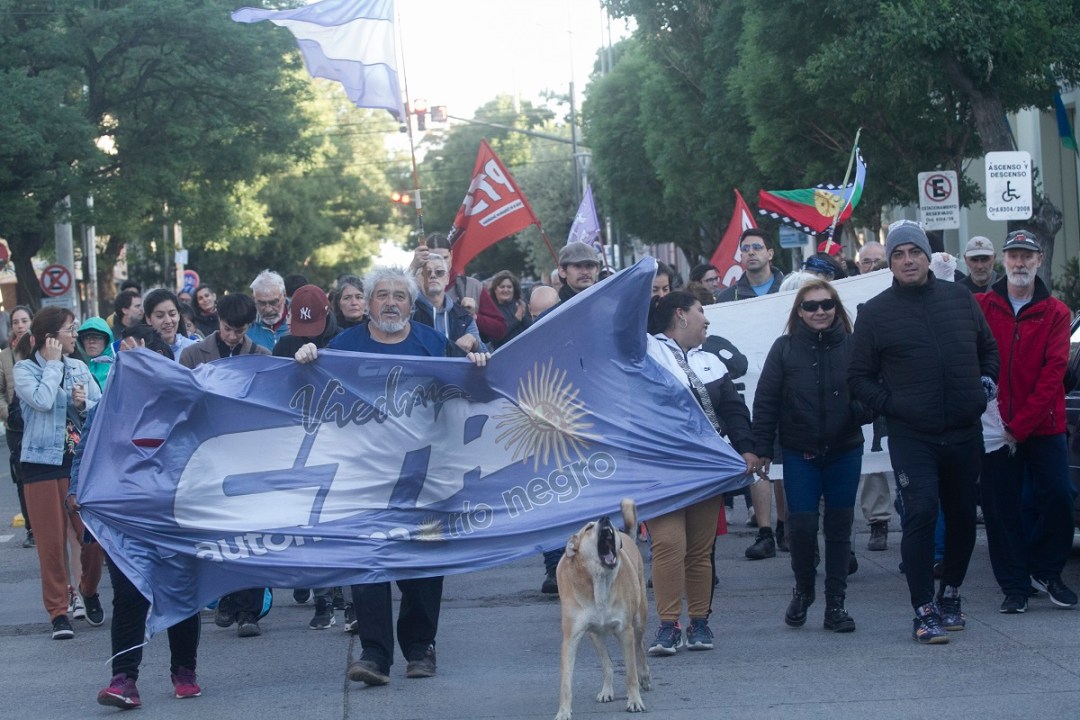 La convocatoria fue en la plaza San Martín de Viedma y luego se realizó una marcha por el radio céntrico de la ciudad. "Este gobierno en 10 días provocaron la quita de derechos más grandes en estos tiempos" afirmaron.