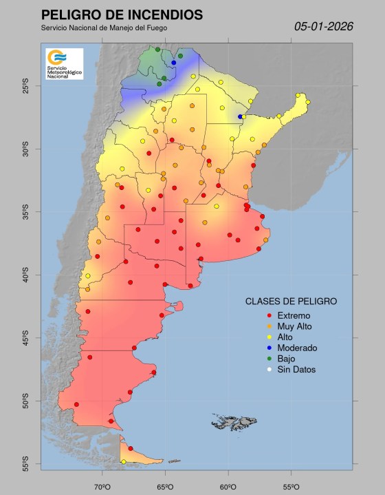 Mapa: las zonas con alerta por incendios en Argentina