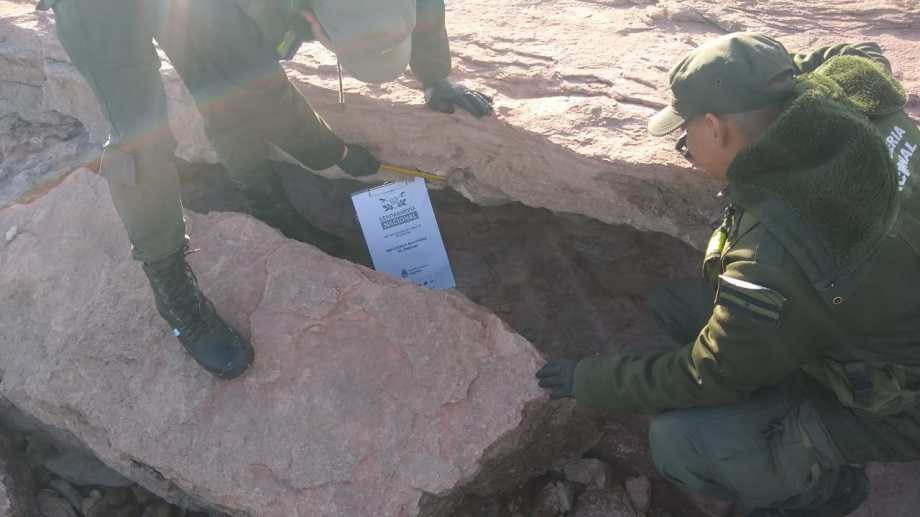 Los gendarmes brindaron seguridad del lugar y apoyo al personal técnico. Además intervino el Juzgado Federal N° 2 de Neuquén, en el marco de la Ley 25.743 de Protección del Patrimonio Arqueológico y Paleontológico.