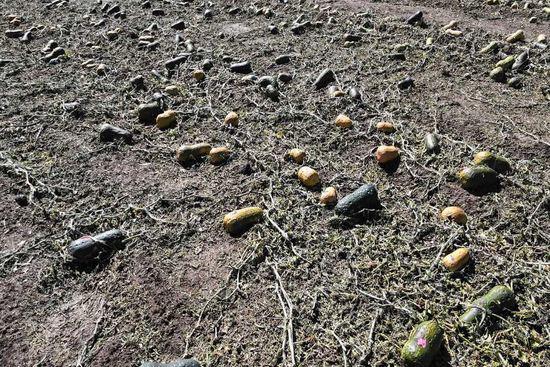 En las chacras, la producción quedó seriamente afectada tras la caída de piedra.