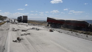 Uno de los vehículos pesados volcó y su conductor resultó lesionado. Fue trasladado de urgencia al Hospital Zonal, pero su vida no correría peligro, informó el sitio laprensadesantacruz.info.