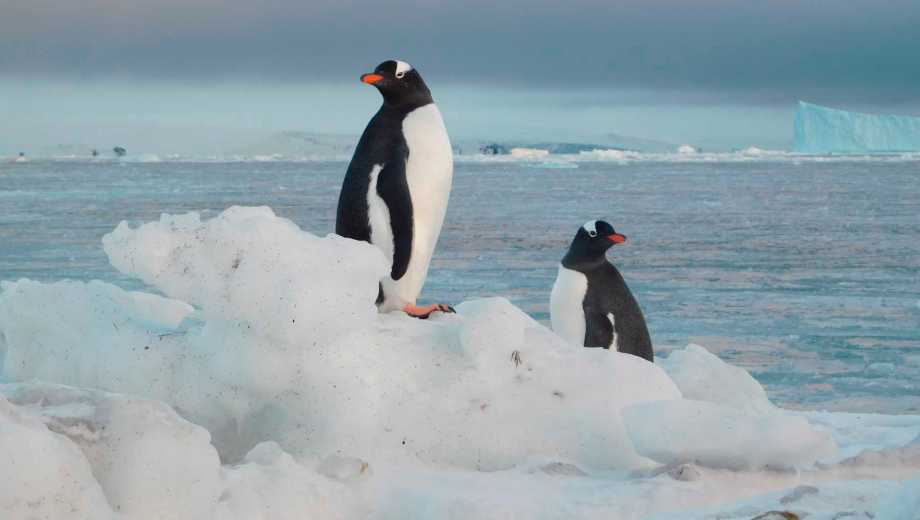 Censo de mamíferos marinos durante el invierno La carismática Foca de Weddell y una colonia de pingüinos papúa. Foto: Mauro Sánchez.
