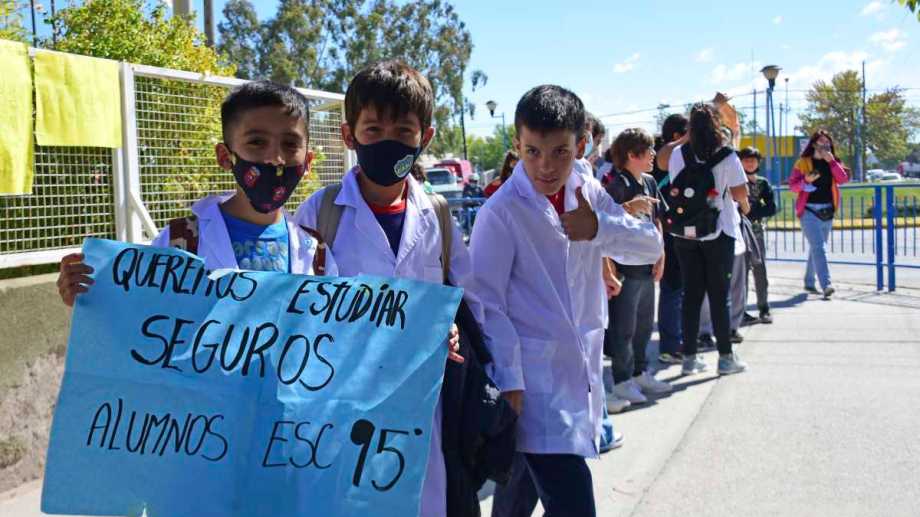 Estudiantes, padres y docentes se unieron en un abrazo simbólico para exigir obras en la Escuela 95 de Roca