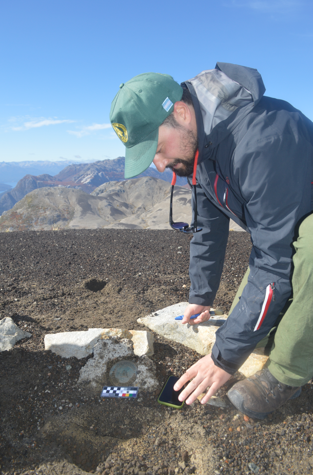 “La placa estaba exactamente en el filo que va hacia Argentina y que divide las aguas del río Blanco y el río Pantojo. Es un mirador natural”, describió Remorino al regreso de la expedición.
