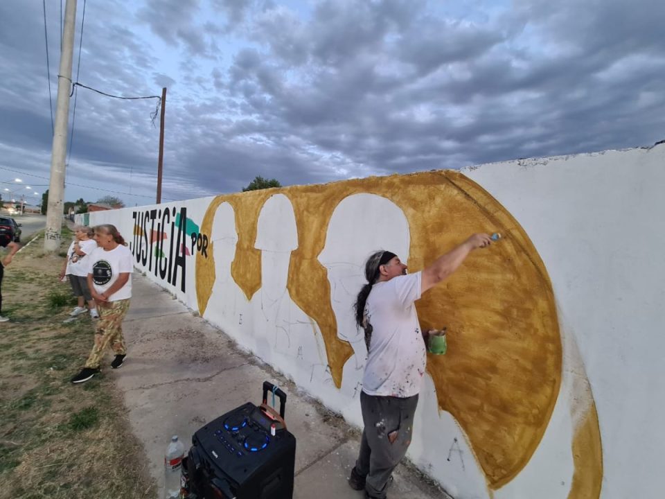 Hay otra obra que se pintó en el paredón del barrio Pampa, en Cutral Co porque dos los muertos vivían en ese sector.