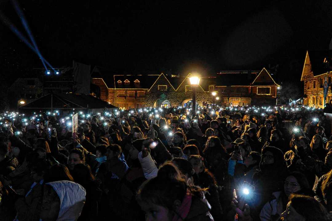 «Gracias Bariloche por este abrazo gigante”, dijo el músico oriundo de Luján ante la gran cantidad de residente y turistas que se acercaron a disfrutar de sus canciones.