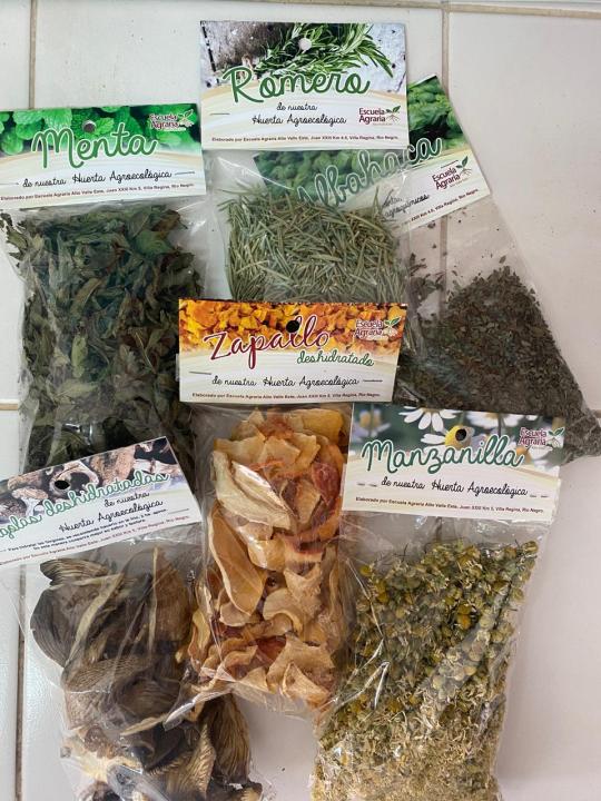 La elaboración de alimentos forma parte de la actividad educativa principal de los talleres. Manzanilla, ajo, romero, orégano, tomillo, girgolas y sopas deshidratadas: una línea de productos disecados hechos con materia prima de la huerta, es resultado de la tarea cotidiana. Es lo que hacen los futuros técnicos todo el ciclo lectivo.