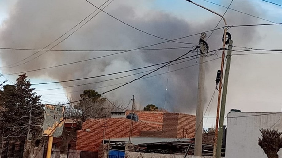 Cuatro dotaciones de bomberos voluntarios de Cinco Saltos, sumado a la colaboración de una dotación de Cipolletti, lograron detener un incendio que se desató por la tarde y generando una gran columna de humo que despertó el alerta de los vecinos de esa zona.