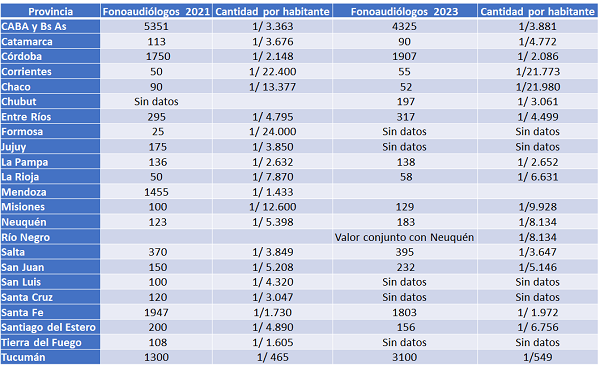 Apuntaron a los datos publicados por la Federación Argentina de Fonoaudiólogos, el Colegio de Fonoaudiólogos de Buenos Aires y la Asociación de Fonoaudiólogos de Buenos Aires, con el objetivo de mostrar una radiografía de la situación en el país.